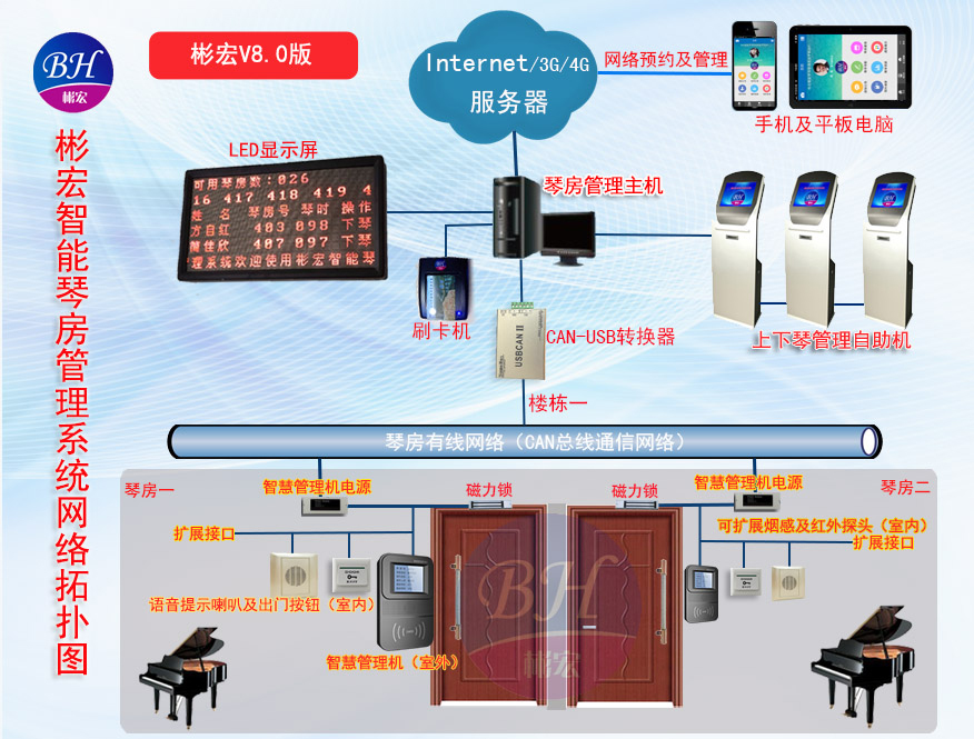 根據(jù)學(xué)校琴房數(shù)量及自身要求量身定做方案。